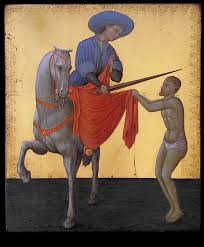 Può bastare un gesto semplice come un dono. Nel vedere un mendicante seminudo che pativa per il freddo durante un acquazzone, Martino di Tours gli dona metà del suo mantello; poco dopo incontra un altro mendicante e gli regala l’altra metà: subito il cielo si schiarisce e la temperatura diventa più mite. Non siamo in Italia, ma in Francia. Ma la tradizione ci accomuna in questo caso e ci offre queste perle per la riflessione. L’episodio fu un tema molto amato dalla pittura italiana e tra le tante possibili rappresentazioni ho volutamente scelto quella che forse è la più semplice, una tavoletta da 20 x 16 cm del Sassetta, pittore senese, maestro al suo tempo, il XV secolo, poco conosciuto al pubblico di oggi, che non sa scoprire tesori: su un semplice fondo oro neutro Martino dona il mantello al povero: due sole persone, ma due mondi si contrappongono in quelle due figure di cui la prima, a sinistra, a cavallo e riccamente vestita, la seconda, a destra, a piedi e seminuda; in mezzo, al centro di questa narrazione per immagini, un mantello rosso. È tutto qui. Non c’è altro da dire, se non ricordare quello che del Sassetta lapidariamente scrisse lo storico dell’arte Cesare Brandi: “non dice tutto quello che sa, ma ben sa tutto quello che dice”. A questa tavoletta la definizione si attaglia a pennello. Ecco cosa mi sento di augurarvi: non c’è bisogno che diciamo sempre tutto quello che crediamo di sapere, cerchiamo di far capire che ben sappiamo quello che narriamo. Che nostro 2020 sia tutto in quel mantello! Chiedo tanto? Forse sì. Ma credo sia bene così. Auguri a tutti.